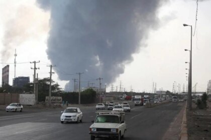 The smoke of the explosion is seen in the port of Shahid…