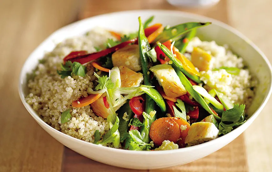Personal trainer Matt Roberts says: “Pre-exercise, a combination of carbs and proteins are needed in order to give you the sugar and the amino acids that will give you the greatest response. Poached eggs, toast and avocado, Chicken and couscous, salad nicoise are all good examples of what to eat around 60-90 minutes before ex